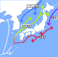 メキシコ湾流とならんで世界最大級の海流である黒潮から九州南西部で分岐する暖流対馬海流が五島列島を洗い対馬へ流れ込んでおり、この流れに乗って多種多彩な魚が回遊し、豊富な海の恵みをもたらす。